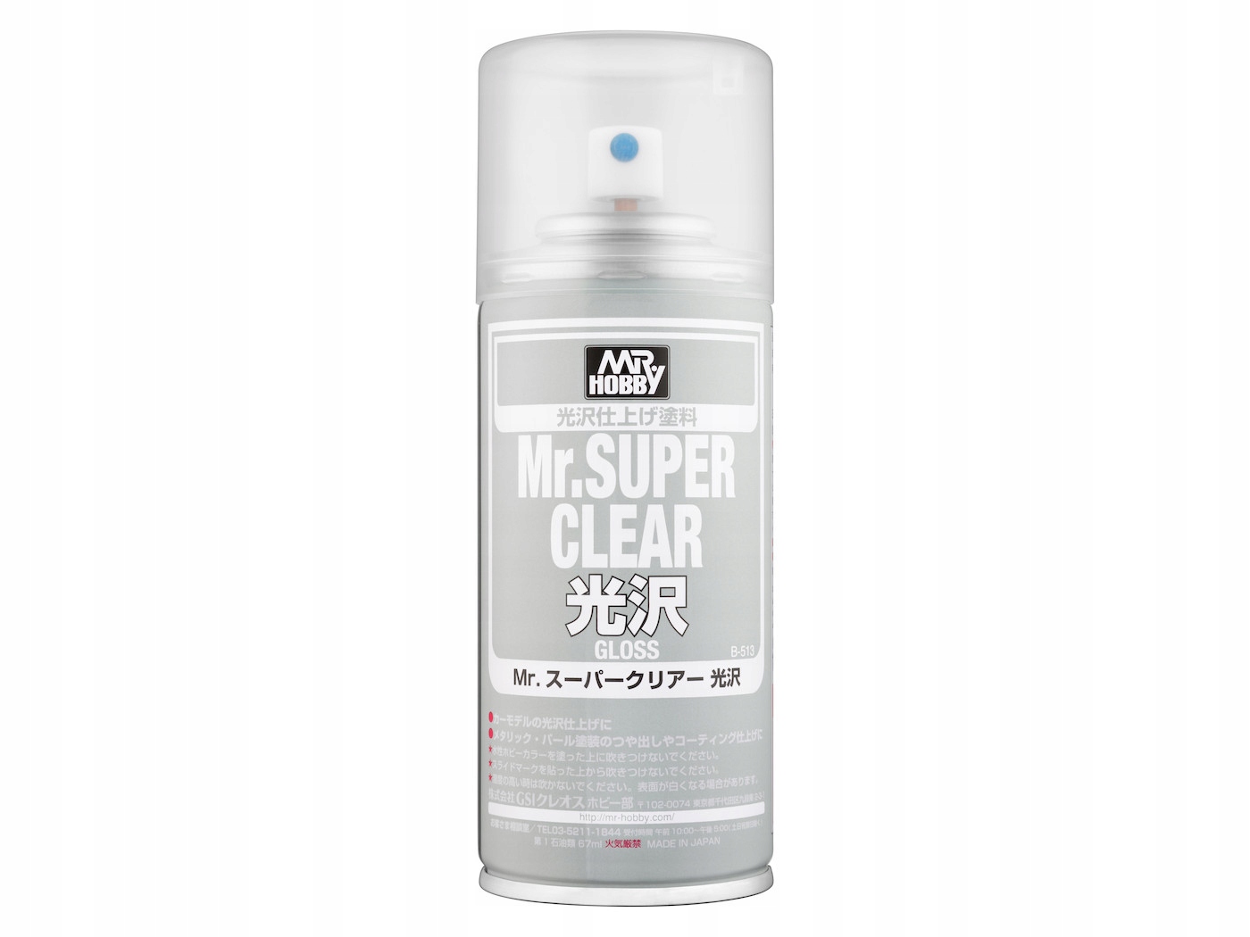Mr.Super Clear to najwyższej jakości bezbarwny lakier do łatwej aplikacji w postaci sprayu. Na bazie rozpuszczalników organicznych wzbogaconych szybko utwardzającymi się żywicami, dającymi niezwykle mocną oraz szybkoschnącą powłokę. Zabezpiecza oraz ujednolica powierzchnię modelu. Po wyschnięciu uzyskujemy cienką warstwę, która nie zalewa detali modelu.