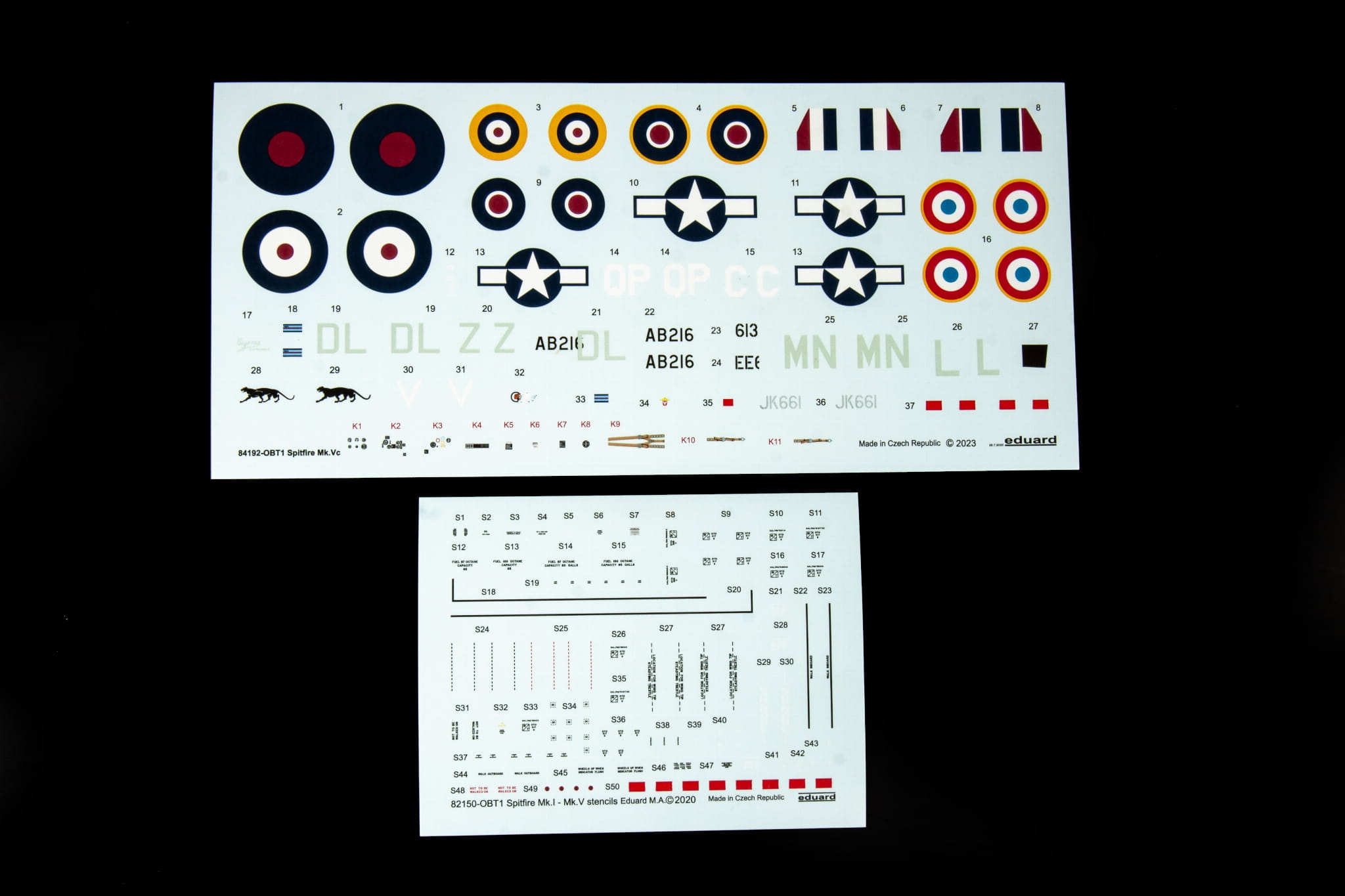 Zestaw umożliwia zbudowanie Spitfire Mk.Vc latającego w RAF, USAAF lub Siłach Wolnej Francji.
