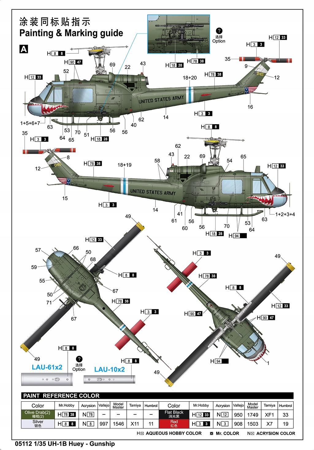 Trumpeter 05112 Śmigłowiec Bell UH-1B Huey Gunship model helikopter 1/35